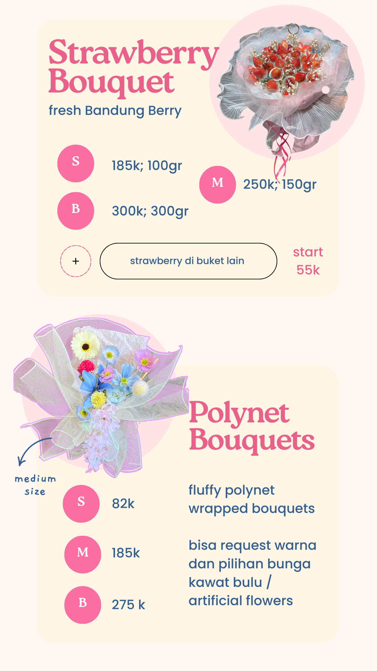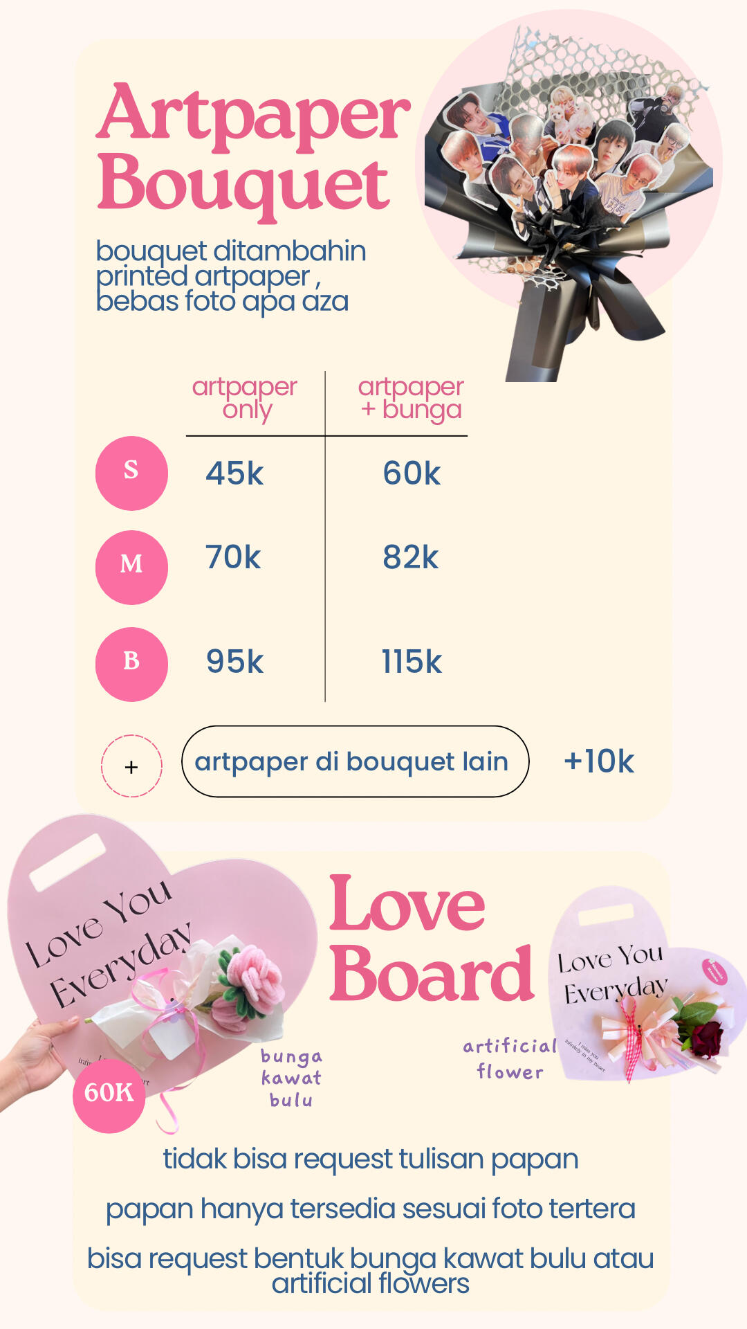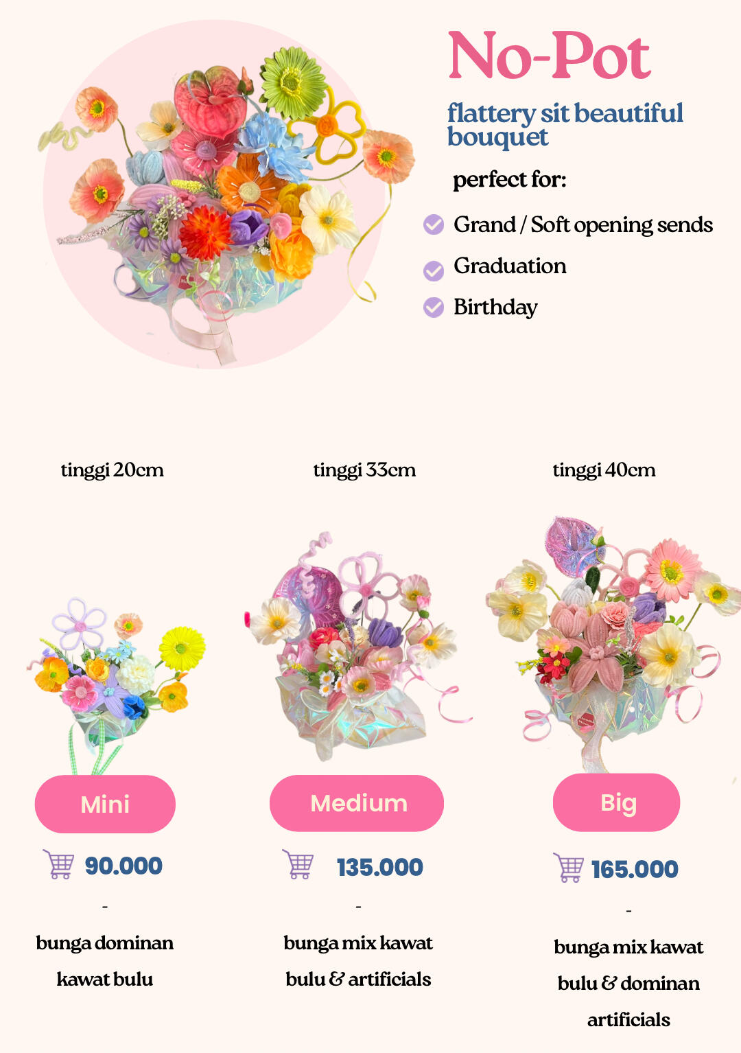 ketersediaan bunga berubah tiap harinya, kemiripan dengan katalog 70-90%